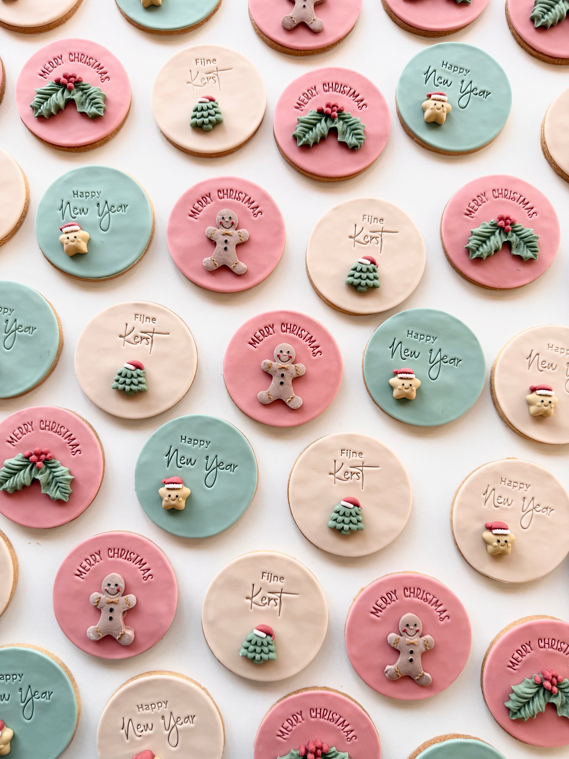 Fondantkoeken: De koeken worden individueel en luchtdicht verpakt in plastic zakjes en zijn daarom tot zo'n 4-6 weken houdbaar én lekker. Wel kan het zijn dat het fondant na een aantal weken wat verkleurt. Om de koekjes zo lang mogelijk mooi te houden, is het heel belangrijk om ze op een donkere en koele plek te bewaren totdat je ze wilt gaan consumeren.
