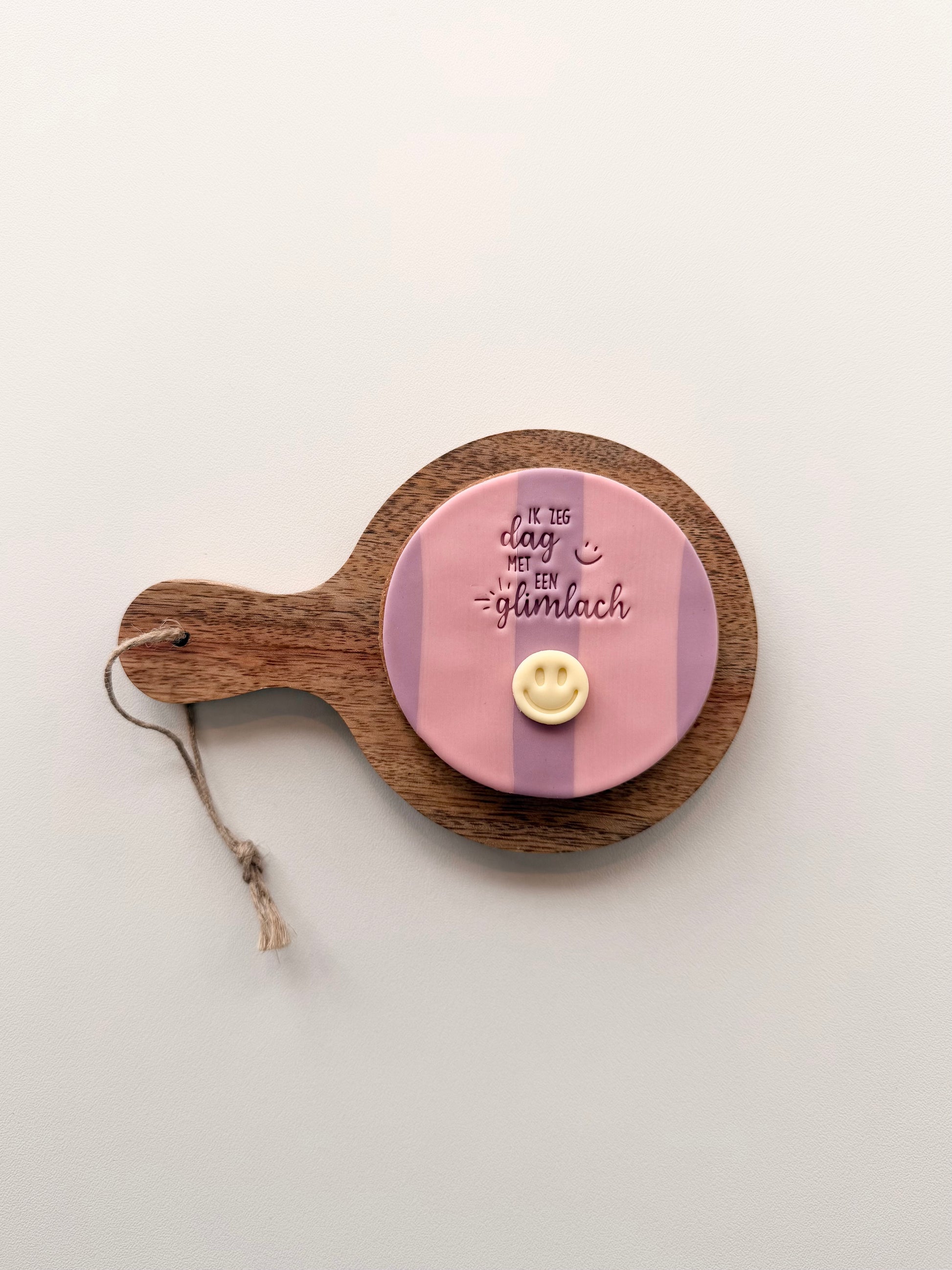 Houd er rekening mee dat bij een groter lettertype + veel tekst, er minder ruimte overblijft voor extra figuurtjes. Dit alles is uiteraard bedoeld voor de fondantkoeken en is niet van toepassing voor de Chunky Cookies
