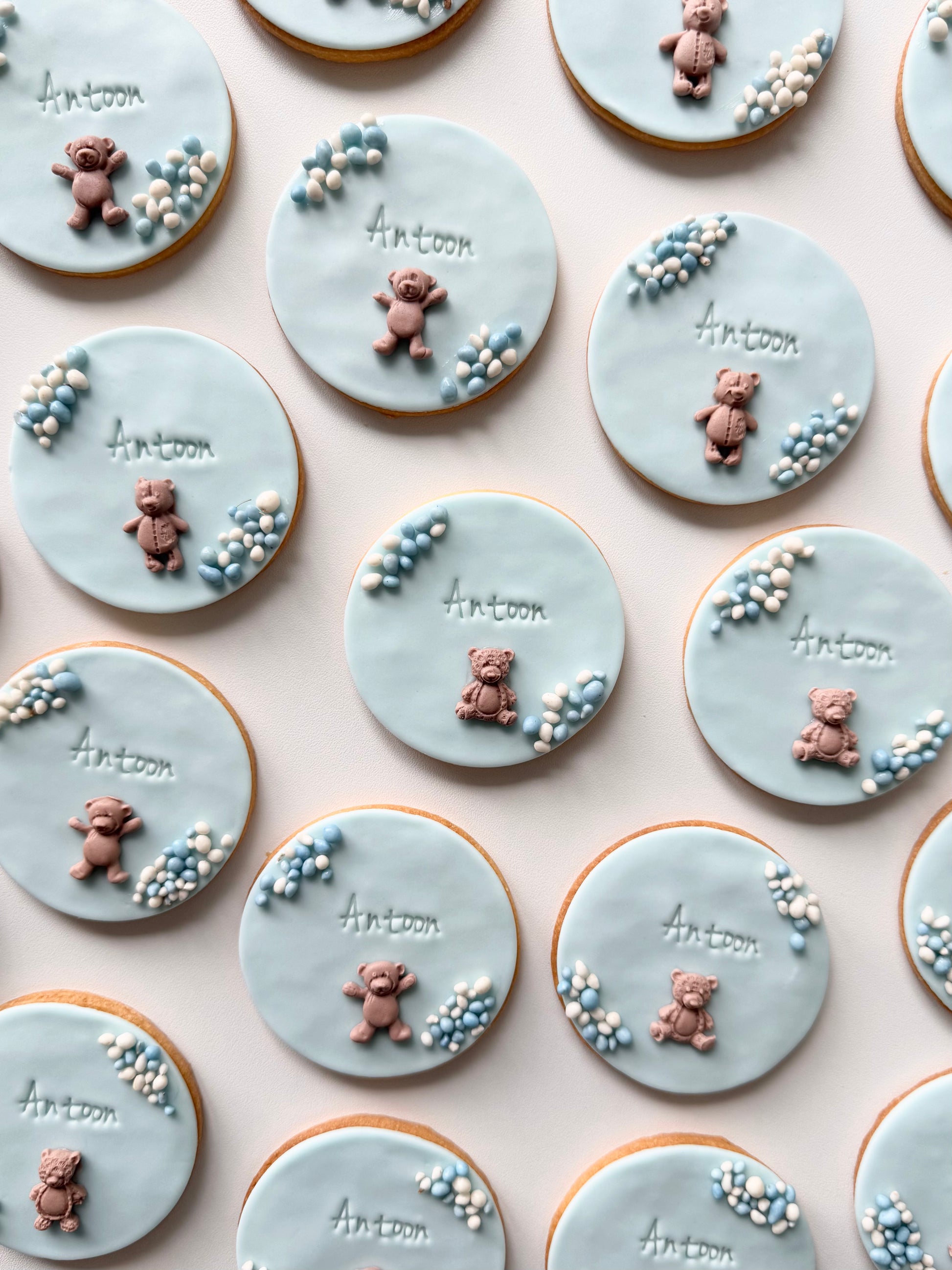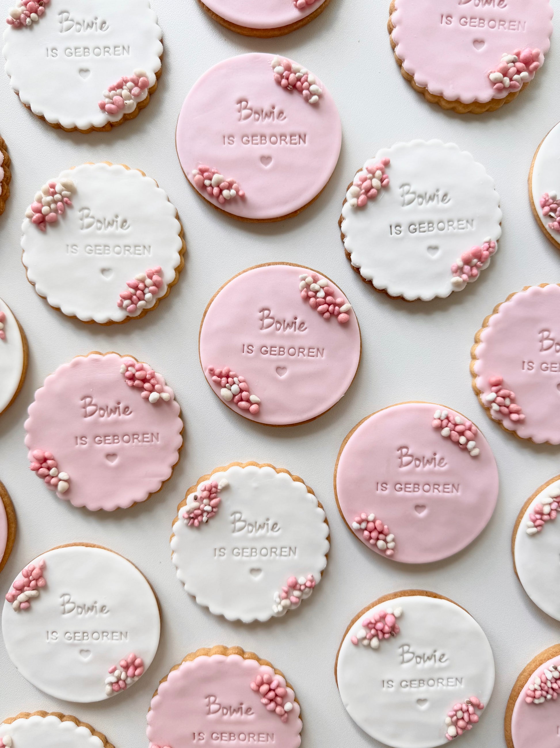 Fondantkoeken: De koeken worden individueel en luchtdicht verpakt in plastic zakjes en zijn daarom tot zo'n 4-6 weken houdbaar én lekker. Wel kan het zijn dat het fondant na een aantal weken wat verkleurt. Om de koekjes zo lang mogelijk mooi te houden, is het heel belangrijk om ze op een donkere en koele plek te bewaren totdat je ze wilt gaan consumeren.