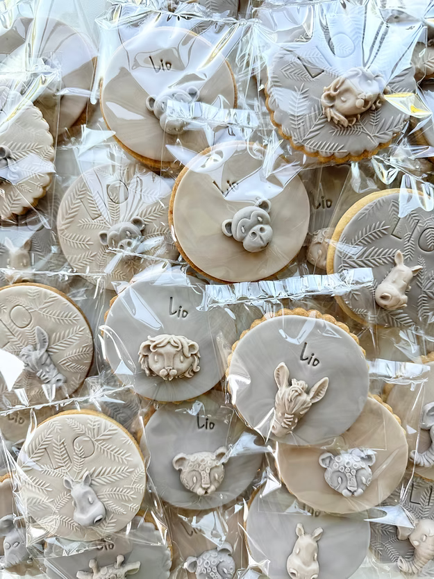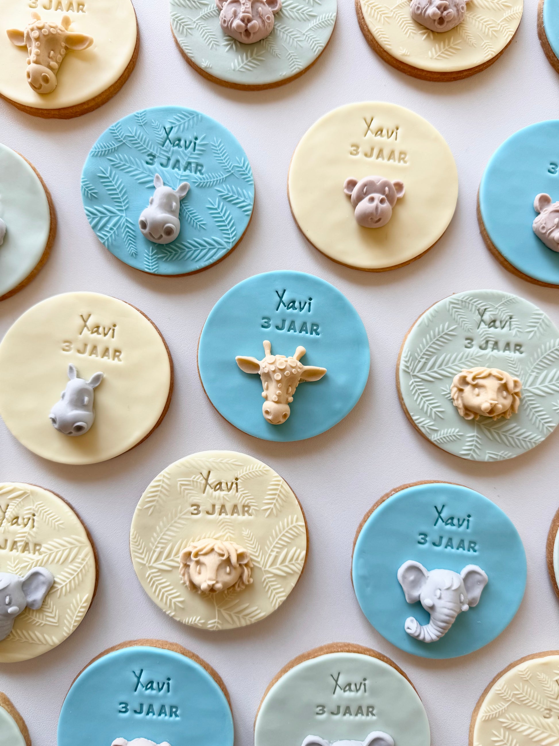 Fondantkoeken: De koeken worden individueel en luchtdicht verpakt in plastic zakjes en zijn daarom tot zo'n 4-6 weken houdbaar én lekker. Wel kan het zijn dat het fondant na een aantal weken wat verkleurt. Om de koekjes zo lang mogelijk mooi te houden, is het heel belangrijk om ze op een donkere en koele plek te bewaren totdat je ze wilt gaan consumeren.