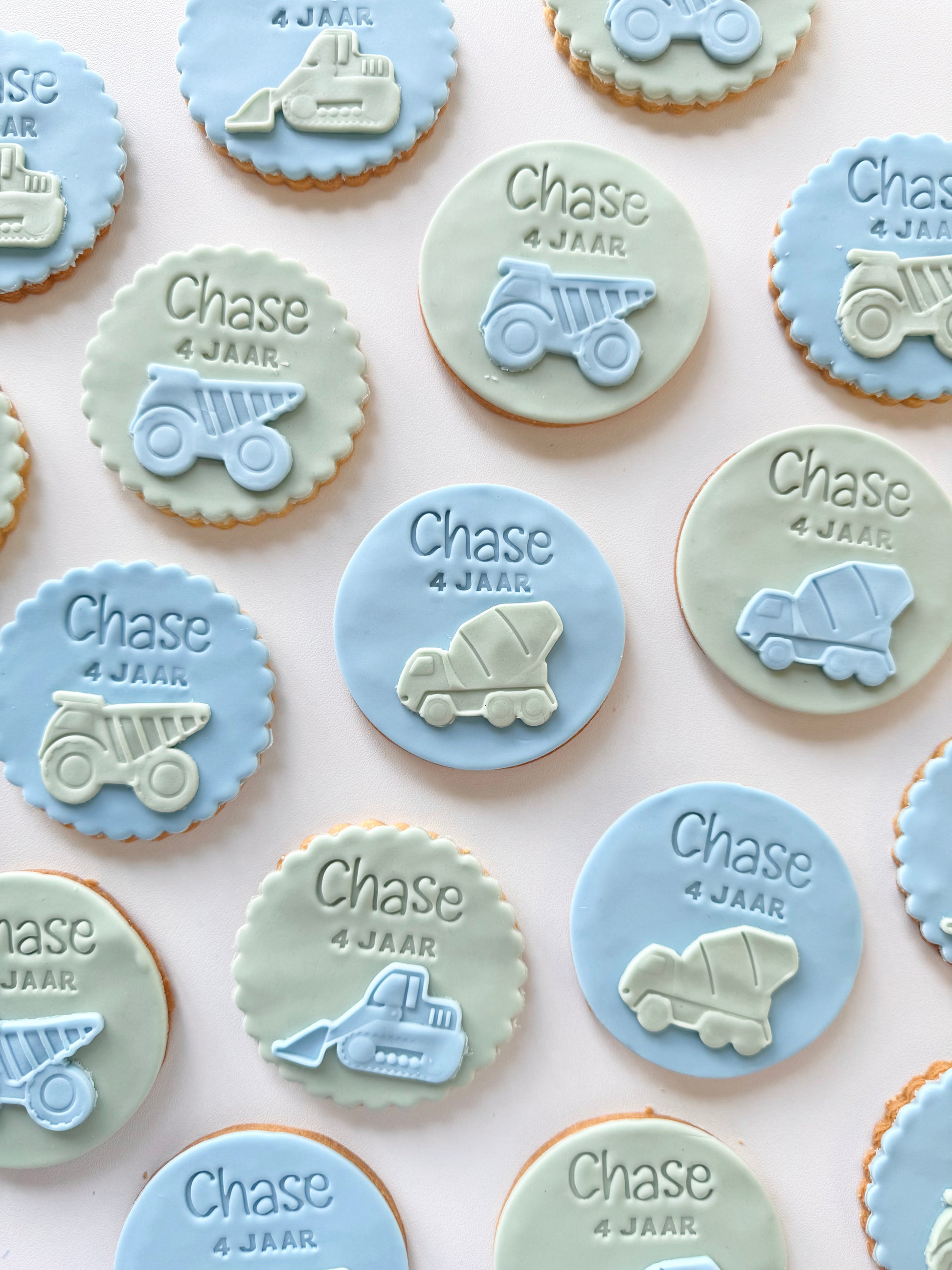 Houd er rekening mee dat bij een groter lettertype + veel tekst, er minder ruimte overblijft voor extra figuurtjes. Dit alles is uiteraard bedoeld voor de fondantkoeken en is niet van toepassing voor de Chunky Cookies