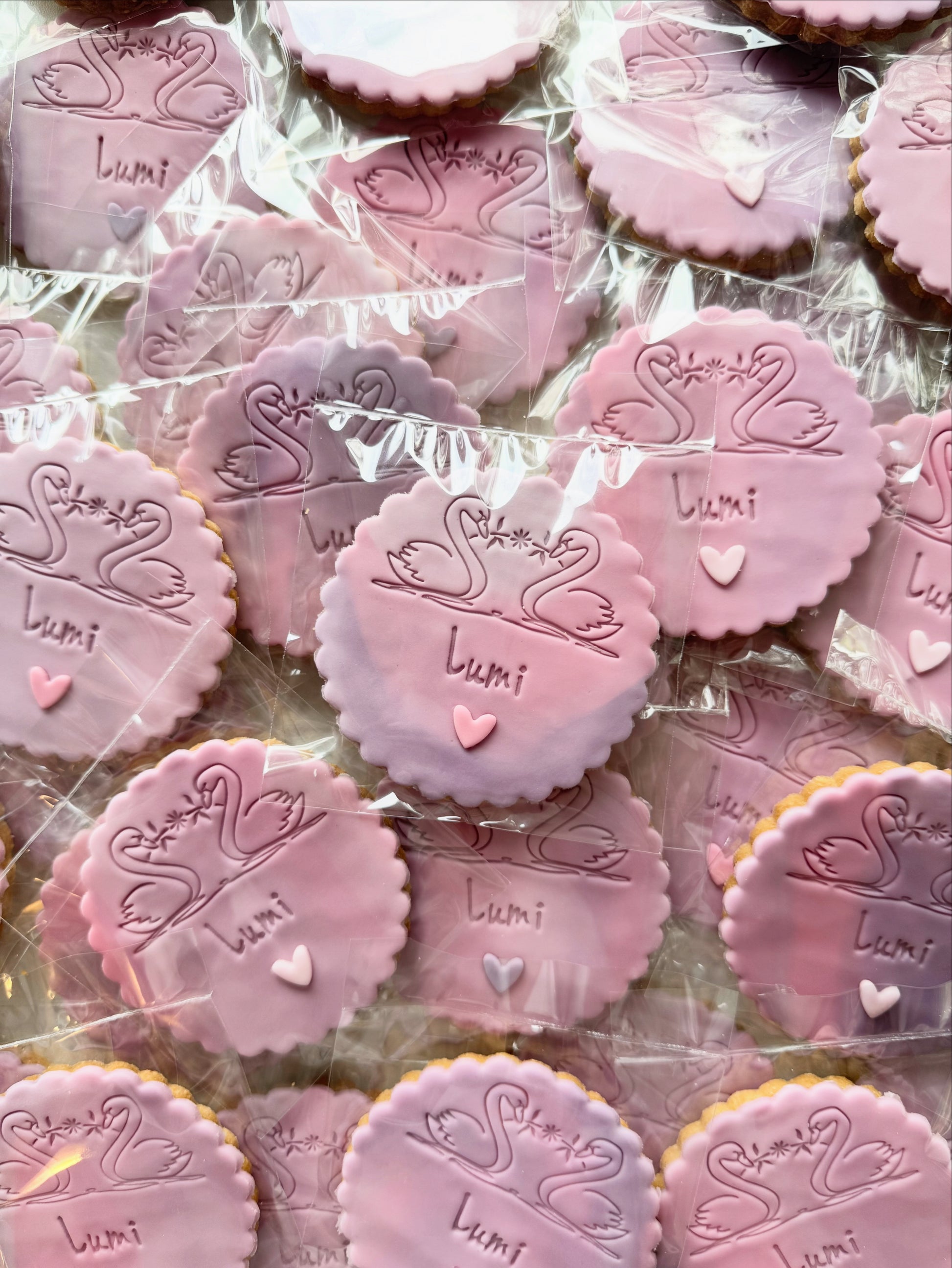 Fondantkoeken: De koeken worden individueel en luchtdicht verpakt in plastic zakjes en zijn daarom tot zo'n 4-6 weken houdbaar én lekker. Wel kan het zijn dat het fondant na een aantal weken wat verkleurt. Om de koekjes zo lang mogelijk mooi te houden, is het heel belangrijk om ze op een donkere en koele plek te bewaren totdat je ze wilt gaan consumeren.
